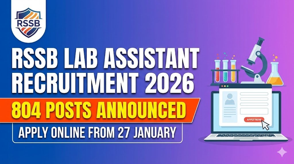 The Rajasthan Staff Selection Board (RSSB) has officially released the RSSB Lab Assistant Recruitment 2026 notification for a total of 804 Lab Assistant posts. Candidates who are looking for a government job in Rajasthan can apply online from 27 January 2026. The last date to submit the online application form is 25 February 2026.